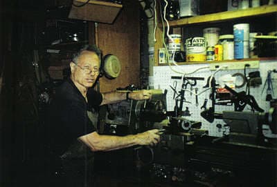 | The artist at his lathe, 2004 Photo: Donald Friedlich |
