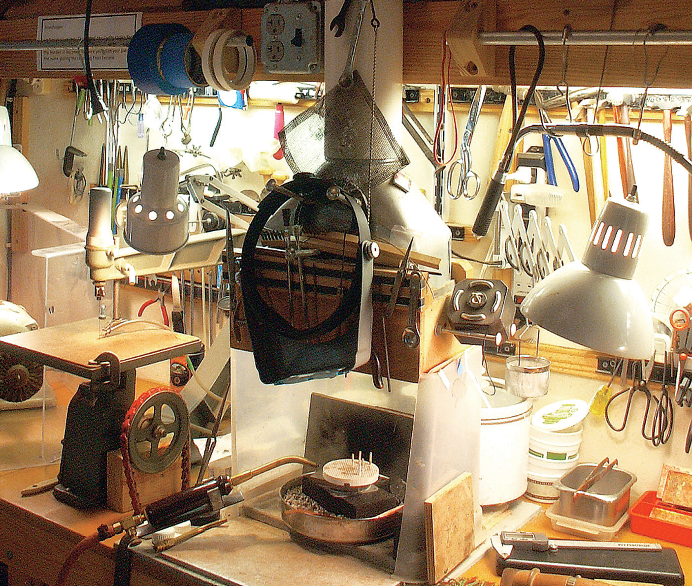 Although Patty Spiro of Live Oak Studios in Chipley, Florida, doesn't earn a living making jewelry full time, you wouldn't know that by looking at her studio. She and her husband have transformed a spare bedroom in their octagon-shaped house into a workshop they both use. Spiro's bench takes up one wall in the room, while her husband's "mini-machine shop" is tucked into a corner on the opposite wall. "We refer to this room as the 'Activity Room,'" she says.