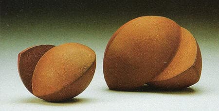 Joyce designed this piece in New York on September 12, and cast it as a one-year remembrance gift for his family and several friends bereaved in the catastrophe. He asks me to sit down. He places one of the red shapes in my hands, and I am overcome. I am also awash, as seems inevitable in Joyce's presence, with associative combinations: the baptismal font, Brancusi's newborn heads, the fontanel of the skull, the crescent of two football arcs off set and striving for Cubist expression.