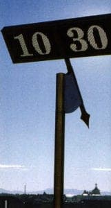 A digital sundial? Also available. It was patented by Hans and Daniel Scharstein and Werner Krotz-Foge under the number 44 31 817; installed on the roof of the German Museum in Munich, it displays the time in intervals of one minute. It functions with the aid of two parallel slot frames. One of them grids the sunlight evenly into thin stripes. The light pattern falls on a second frame, on which all displayed numbers are also arranged in slim stripes. They are interwoven in such a way that the slim stripes of light from all parts only ever illuminate one number. Depending on the position of the sun, hours and minutes are made visible in this way in a form of moiré on the matt glass pane located behind.