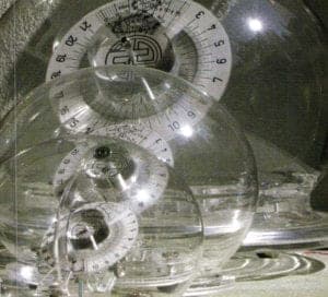 The fact that their development continued into the 20th century and will most likely continue can be seen in the example of the patented Bifilar sundial developed by the German astronomer Heinrich Michnick in 1923. Two threads cast a shadow on a matt glass pane, in which hour curves have been scratched, so that the point where the shadows cross denotes the hour. In 1965, Martin Bernhardt invented a technically refined, precision sundial. It has a bat-shaped shadow display, which also includes the time equation. Central European time can be read directly on the wing-like scale. However, the bat must be replaced at the different solstices; its fat end points down from December to June and up from July to December.