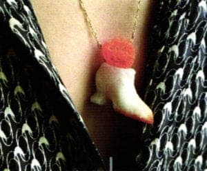 'Sugarboots' pendant made from sugar, acrylic and gold