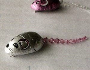 'Staniolmouse' brooch made from cast acrylic, staniol paper, Swarovski beads, silver
