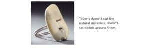 Taber is also a proponent of offering as much choice to his customers as possible. Inspired by a Lake Michigan artist who uses black stones to set diamonds, Taber started incorporating found materials in jewelry about six years ago. He loves working only with pieces he has collected himself and offering customers jewelry "direct from the source." That way, he can discuss the jewelry with the consumers, familiarizing them with its story.