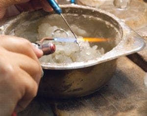 Because they're small, findings and some chain links can be vulnerable to heat. That's true especially of findings containing heat-sensitive steel springs, such as lobster-claw or spring-ring clasps. A laser welder is the safest avenue for these types of repairs, given its localized heat. But when that isn't an option, there are a few easy ways to protect the piece from heat.