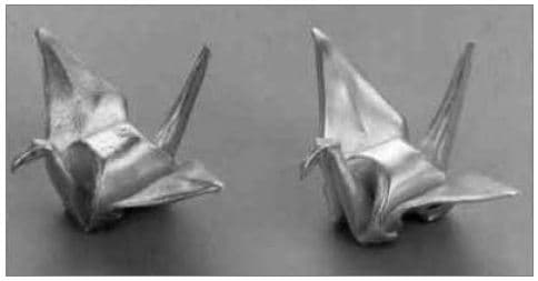 | Figure 10 Origami birds from gold and silver PMC clay sheet |