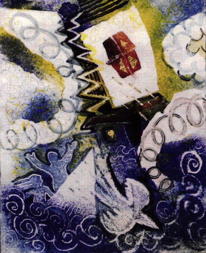 The process of creating art anchors my life, and provides an incentive to live in the moment. First, an idea takes hold and digs roots into the imagination. Next, I choose the medium that best suits the project. Currently, I am working in vitreous enamel, watercolor, collage and acrylic, often mixing media. Emotions blend with technique to create a finished piece.