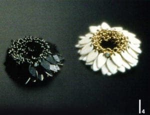 She loves me, she loves me not, she loves me… laminated blossom leaves from Gijs Bakker shaped into necklaces have become the classic among the jewelry avant-garde. Artists like Norman Weber, Margaret West or Susanne Klemm have followed up various ways to transform the blossom motif into 2- dimensional jewelry with state-of-the-art digital printing and photographic or painting techniques. Its figurative language is photorealistic or subtly abstracted to abandon handed down flower symbols and find its way to personal metaphors. Or it tells "private myths" from childhood like the House and Garden brooch series from Norman Weber.