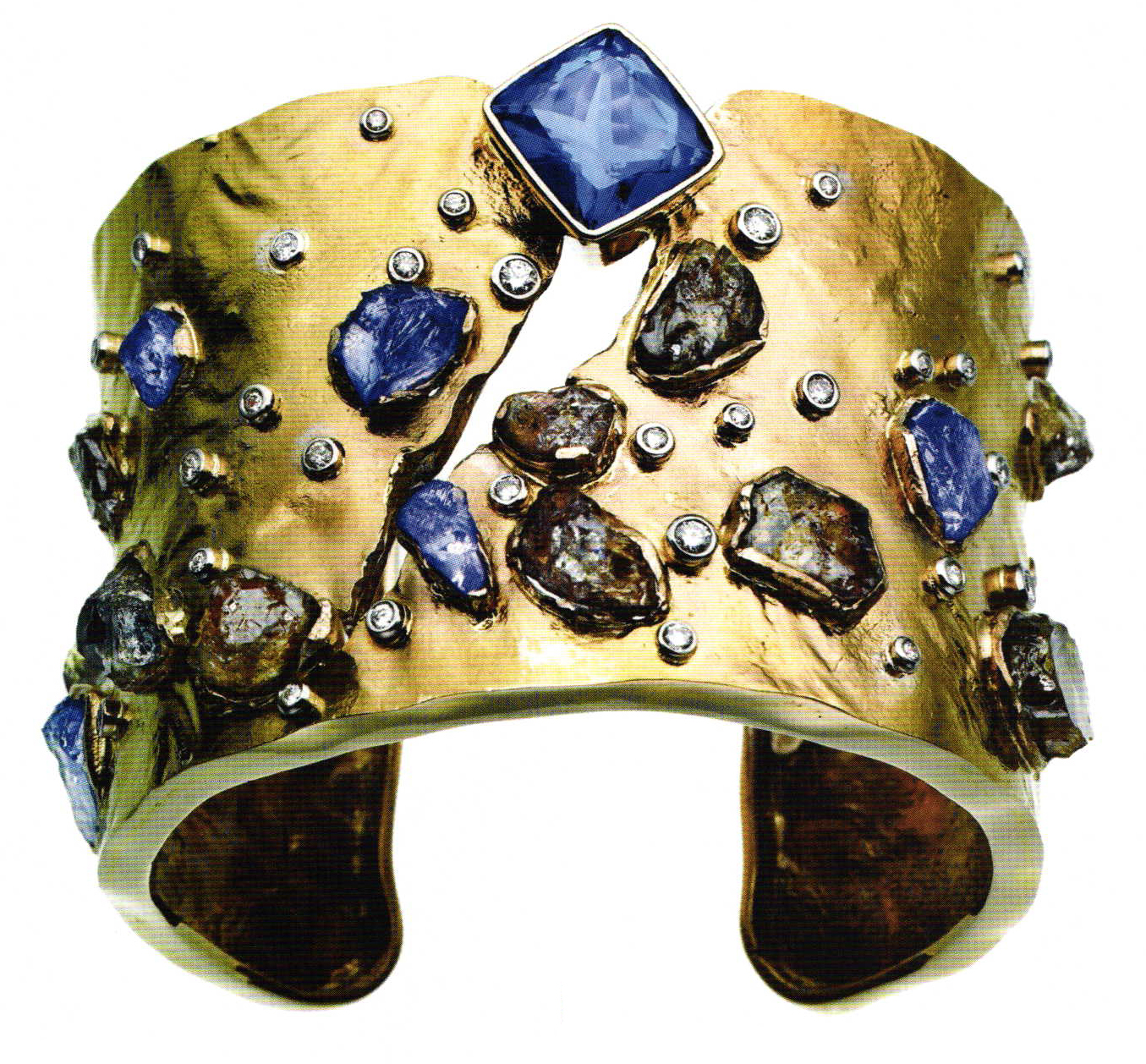 Ginny Dizon drew inspiration from the Massai legend that tanzanite was created by lightning and the consequent steppe fire. She celebrates this blue miracle of nature with her combination of cut and uncut tanzanite, diamonds and white gold