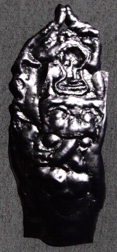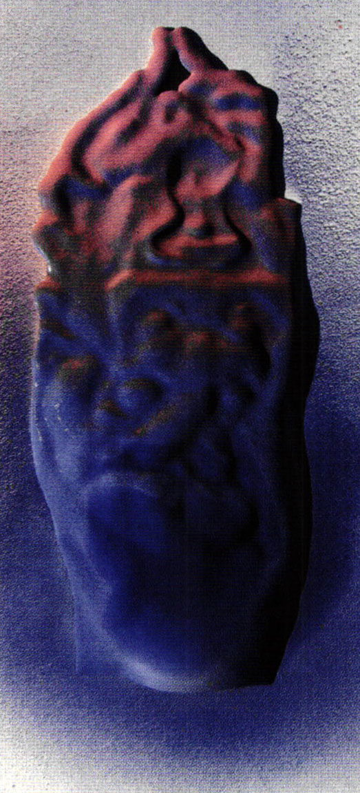 - "The Quickening" Enamel on repoussé steel 14 x 4.75 x 1 inches, 2008.