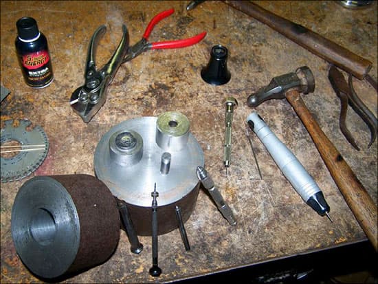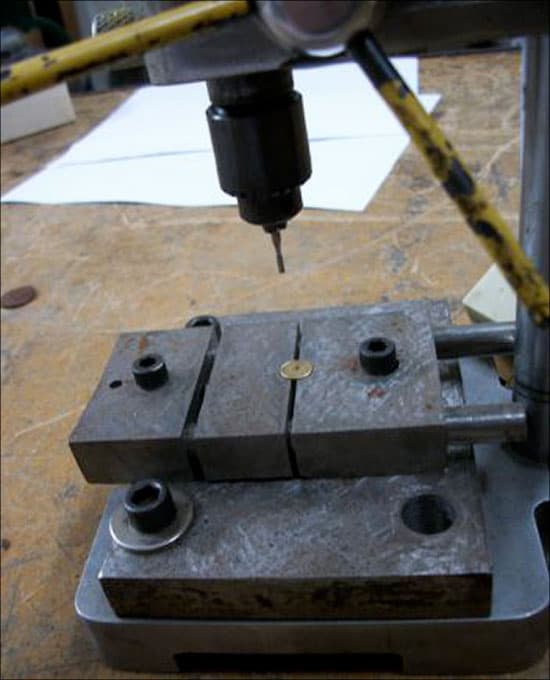 - A top die which fit over that with a center hole for the striking ram