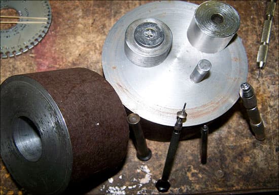 The engineering was done so making the tools came next. Glenn got the die and engraving work, I got the centering and pin attachment and Missy got the blanking and finishing work. Division of labor is going smoothly. Wait a minute! We don't have any bronze or pure platinum in stock so now EXPEDITING IS EVERYTHING.