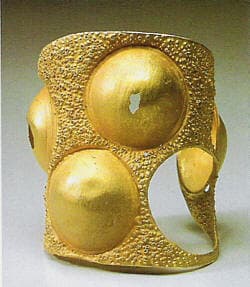 | Ring, 2001 18k gold 1 x 5/8 x ¼" | Cuff, 2001 18k, gold 3 3/8 x 2 x 3/8″ |