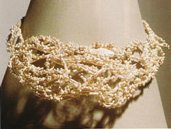 Artist Darcy Mire takes the term 'precious jewelry' and turns it on its head. Her careworn cuffs, rings, and neckpieces, most constructed of sterling silver or 18-karat gold, are more wearable sculpture than status symbol; they seem almost embarrassed to be valuable. An occasional shy diamond, garnet, or sapphire peeks from beneath a tendril or under a fold..
