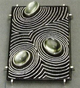 "Thema: Stahl" is the title of an exhibition that the North Rhine-Westphalian Colloquium proposed and organized for showing in a number of museums. 16 jewelry artists from Germany were selected and asked to show a wide variety of differing ways to grapple with the properties of this material. The colloquium is a non-profit organization that has been awarding a prize for steel art every two years since 1996. The work from this competition also forms a part of this year's exhibition. It was offered to the students of the Pforzheim Goldsmith School that 100 projects were submitted for. This material a lows innumerable surface designs from glossy polished, mat gloss ground and even black/brown corroded steel. But that's not all. There is also the combination with precious metals such as inlayed silver or leaf gold. Although corrosion usually has a negative connotation, students used it as an artistic means to give the "rusted" piece of jewelry a very special aura. You will be able to see "Thema: Stahl" from July 18 to August 29, 2004 in the German Sword Museum in Solingen and in the German Goldsmith House in Hanau from September 10 to the beginning of November of 2004. It will also make a stop at the Klaffenbach Moat Castle in Chemnitz where the exhibition will be from November 21 to February 28, 2005, at the same time as the Silver Triennale taking place there.