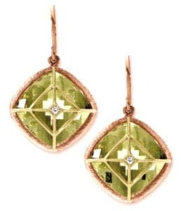 18 karat hammered rose and yellow gold earrings and citrine and diamonds