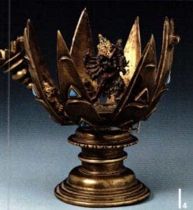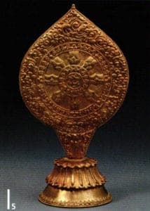 Wheel of doctrine, Tibet, 18th-19th century. Gold, chased, engraved and punched