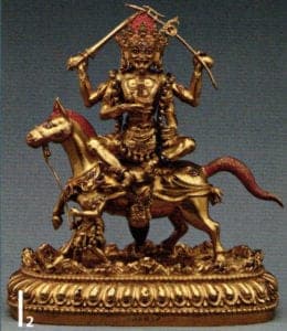 Tutelary goddess Sridevi, China, Ming Dynasty, Yongle period, 1403-1424. Copper, fire-gilded, part color painted