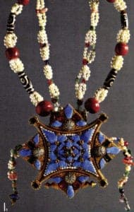 Amulet chain, Tibet, 20th century. Gold, silver, pearls, coral, gemstones, 'Si-pearls'