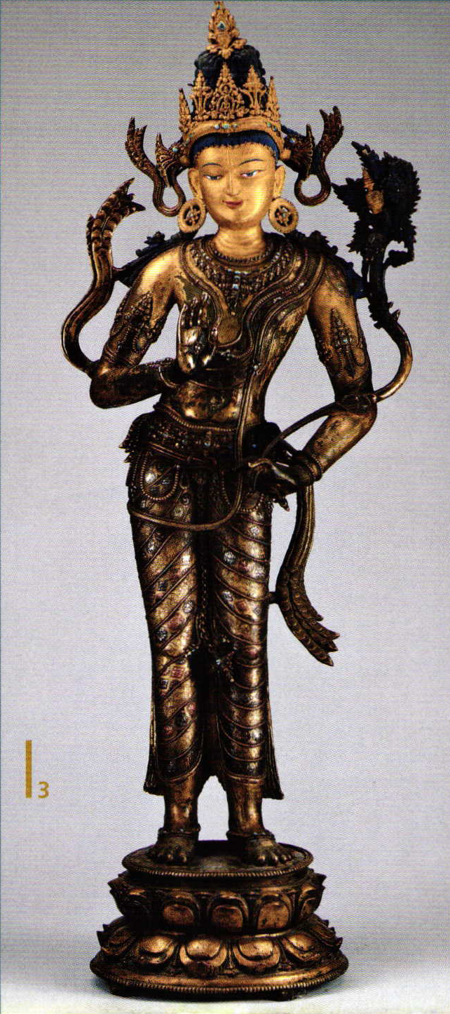 The fire gilded figures, the rolled pictures, manuscripts, illustrations that coney interesting insight into the perception of jewelry in the country, but also the gem encrusted altar implements, the precious shrines and again and again in the Bodhisattvass, teachers, protective goddesses and heavenly travelers allow us to experience the whole stylistic wealth of Tibetan culture. Works that were created between the 5th and the 20th centuries and draw on most varied influences from India, Nepal, Burma, Kashmir or China. These are no works according to western perception; far more substance of Tibetan identity. Mostly created by anonymous artists, they remain to this day revered by clerics and population in the monasteries. At the same time, they were the cultural foundation of a people that despite much repression has remained self-confident.