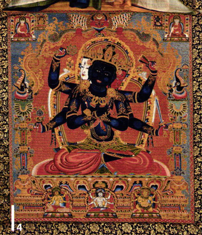 Yidam Guhyasamaja-Aksobhyavajra. China, Ming Dynasty, Yongle period, 1416-1419. Silk-Thangka, embroidery with untwisted silk threads and gold-wrapped paper strips