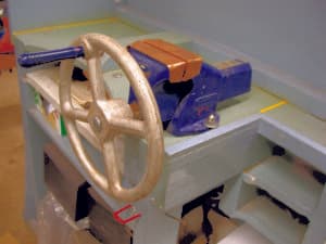 One way to speed up a machinist's vise is to bend the handle. Heat the handle about a quarter of the way down with a torch. Once the handle is red hot, hammer it over. The bent handle will make the vise easier and faster to use. You can also replace the handle with a wheel, such as the kind you would find on a lathe.