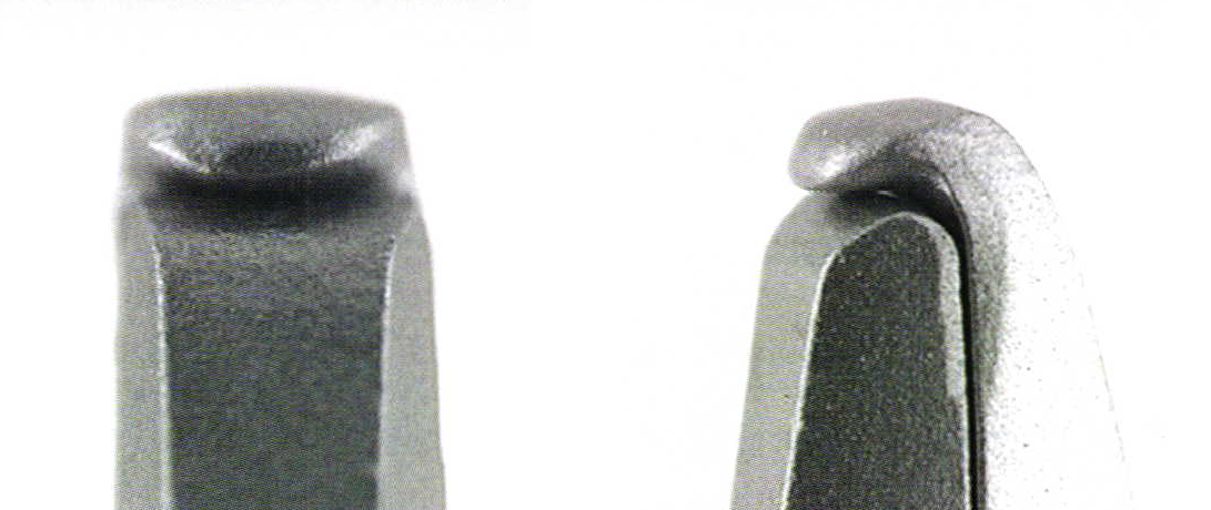 The flat spot in the bottom jaw keeps them in the notch of the prong as you bend them so it doesn't slip out and mar the end of the prong.