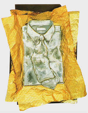 The Ch'an or Zen Buddhist worldview synthesized the Taoist idea of ch'i energy with the Confucian filial piety and ancestor devotion. Zen arises from the insight/satori that the ordinary is extraordinary, an insight manifested in the aesthetic and artistic attitudes of China , Japan , and Korea . If even the most modest object can embody ephemeral beauty, described in the simplest possible terms in the haiku of Japan , then it too can become a vehicle for spiritual transformation. In modern art history the Surrealists arrived at the idea of the ordinary becoming extraordinary from a different path, that of non-rationality and poetic, psychological association. Each path arrives at the same aesthetic goal of nonattachment to conventional ideas of art or beauty. Along these lines, Richard Mafong's Button Down Shirt takes a conventional item from the history of Chinese labor in North America -the laundry-and sets it apart in a frame of gold foil. Mafong thus elevates the ordinary shirt while at the same time opening the viewer's imagination to its potential meanings and history. Cast in precious materials, Mafong creates an ironic commentary on contemporary American cultural values by turning the shirt into an icon set within an elaborate frame. Both ironic and poetic, Mafong's Button Down Shirt employs traditional Asian and contemporary European aesthetic ideas of transforming the mundane into something rich and strange.