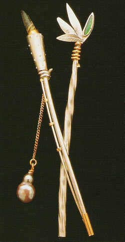 ![]() | Susan Chin Mia Divining Rods, 1997 Mixed metals and semiprecious stone, shakudo, and mokume |