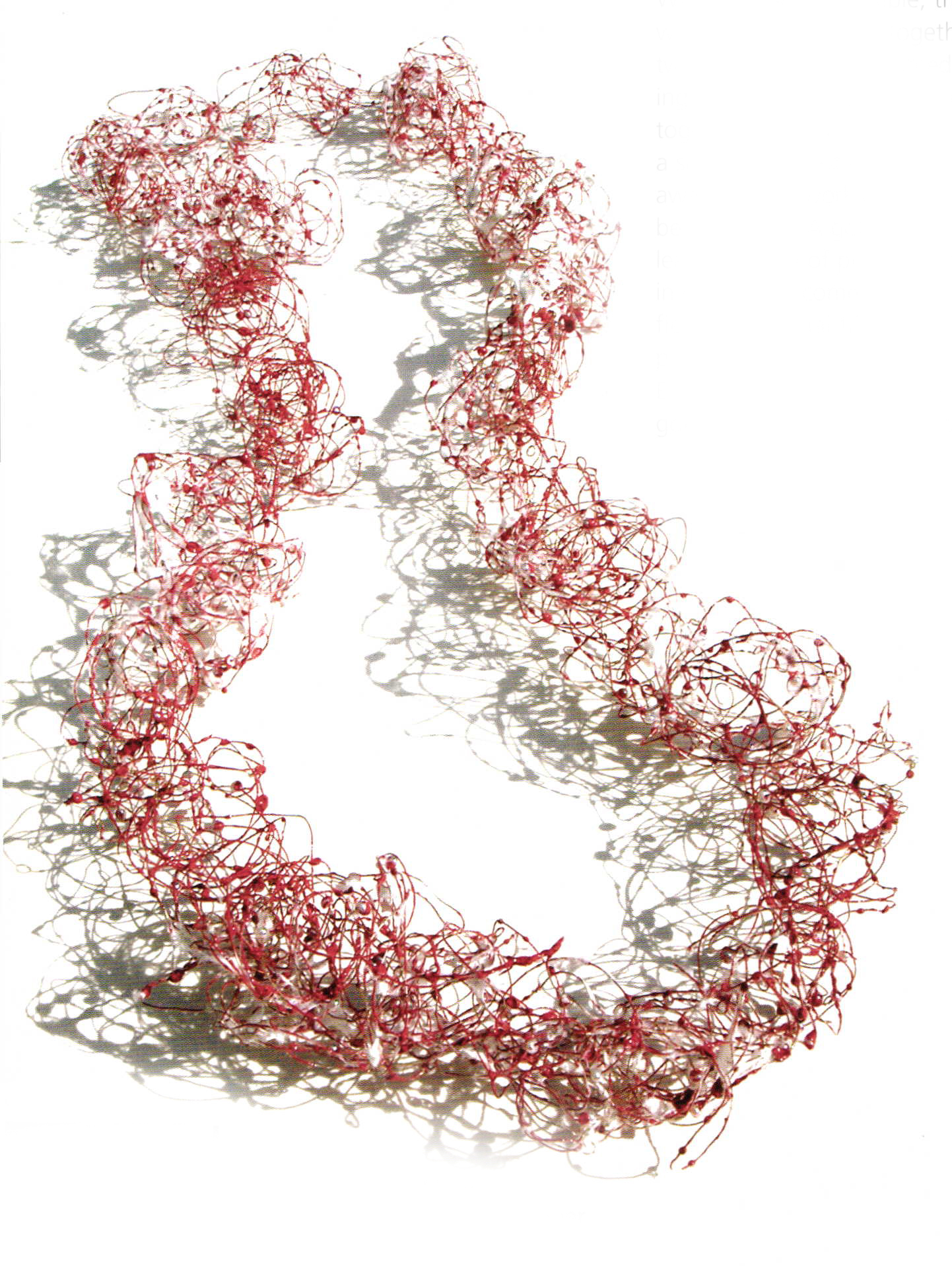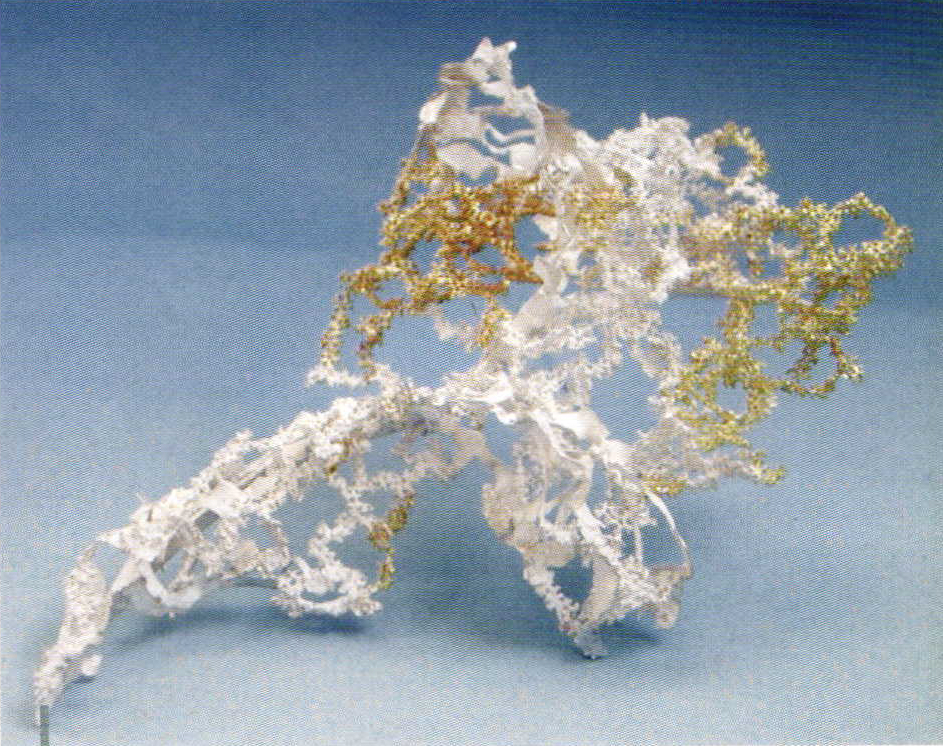 Detlef Thomas moves in the tense field between chaos and order. He is equally fascinated by mathematic structuring of a surface in the form of patterns, including the effects of coincidence on the principle of design, which also includes a latent proximity to destruction. Monika Brugger's work touches the thresholds to material dissolution. Perforated by endless numbers or tiny drill holes, the finely pierced metal surfaces in her lightly taut brooches have become seemingly transparent. A whisper of nothing forms a structure with organic appearance in the hands of Yasunori Watanuki and Mari Ishikawa. Contradicting the weight of metal, they seem also like volatile manifestations, akin to clouds, inconstant and imaginary. Barbara Simon's "Poems" appear to have escaped from the lightness of a single moment. They are lent weight by the galvanoplastic implementation in metal. However, their picturesque duct remains preserved. The writing is transformed into filigree ornaments, while the meaning of the text can only be guessed at.