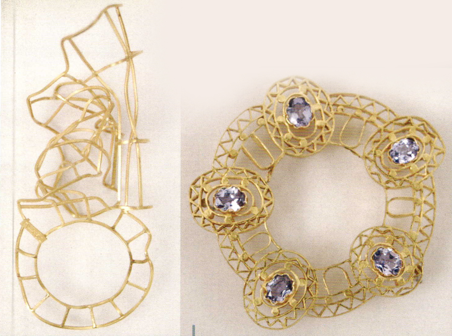 The thousands of year old skill of filigree production has enjoyed an exciting development in contemporary jewelry art. It has long since departed from its aesthetic and technical tradition. However, the crafty endeavor to rid metal of its heavy qualities has remained constant. Jewelry objects of breath taking delicacy, with an airy sense of lightness, appear to defy the laws of gravity.