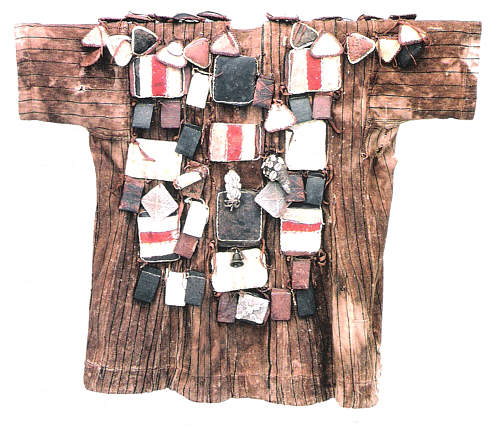 | Asante War Shirt, Ghana 20th century Cloth, leather, twine, cowry shells, amulets 35 1/16 x 42 5/16″ Collection Seattle Art Museum Photo: Paul Macapia |