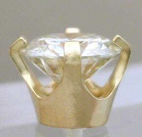 The depth of the Tru-Seat pre-cut bearings is calibrated according to the height of the gemstones crown and is a graduated percentage depending upon the size of the gemstone. The amount of the prong cut away to accommodate the girdle of the gemstone is based upon its diameter. The bearings are pre-cut at the correct angle to securely hold the gemstone