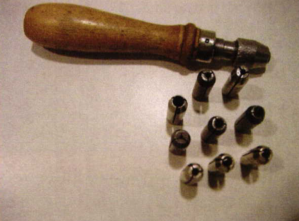 Expose only the very top of the cullet in the tube holder. It will grip securely and will prevent the sides from collapsing while preparing the item for setting. The clamp holder has seven sizes of chucks so that you can pick the chuck that will hold the cullet securely as you worked on it. Insert your jewelry carefully and tighten very securely! Then place the diamond on top and check if there is enough metal protruding around the diamond to securely set it. If not, spread the top open with an awl.