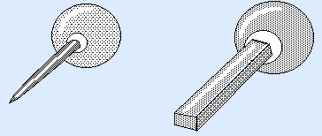 This tool functions to produce a small area of pressure on a stone's facet to level it in it's setting. It therefore must have a small end to produce a restricted pressure point and be soft enough that it will not scratch or damage the stone. Traditional materials for such a leveling tool include wood, ivory, bone , copper and brass. A toothpick will work. My favorite is a traditional tool made of a brass rod tapered on both ends with a lentil-like boss in the middle which one presses against with the fingers when using it. A diagram follows: