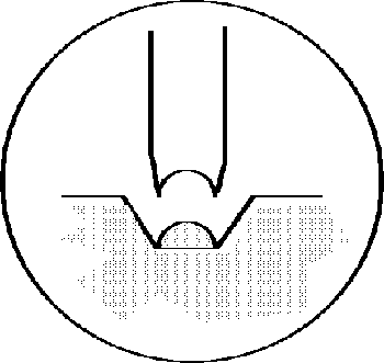 When reshaping the burr care is taken not to overheat it during abrasion and thus causing a loss of hardness (overheating destroys the temper of the burr). The very tip of the tapered shank is rounded very slightly and gently using emery papers and finally polished to a bright shine (my favorite polishing compound for this is Fabulustre®). While a reshaped burr is the best solution to my mind because the resulting tool is harder and lasts longer without repolishing, the actual rounded shape needed can be found in a set of tapestry or thick darning needles. It looks like a sharp point on such needles but when inspected under a loupe the end is actually rounded off nicely.