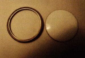 The diameter of this is 5 inches (13 cms) and an interesting innovation is that the whole piece is of spun copper, leaving the narrow frame as an integral rim surrounding the portrait (Pic. 2). This solved the problem of edging for the piece, while increasing rigidity. The translucent dark brown ground and counter enamel layers were applied over the cleaned copper surface within the rim for top and counter sides, and fired.