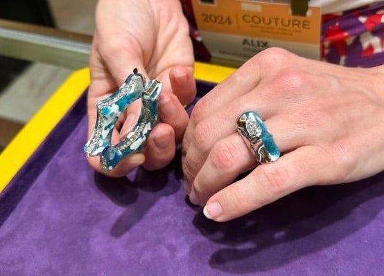 The unconventional materials seen at the shows this year were nothing short of spectacular. From discarded natural materials to manmade waste products to use for metal manipulation not originally intended for jewelry purposes, the 2024 Las Vegas gem shows proved that artists are thinking out of the box to create beautiful and sustainable art. What do you think we will see next year?