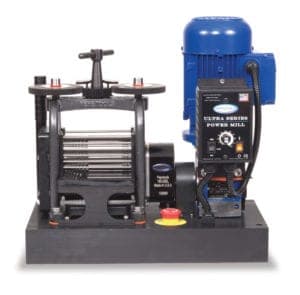 Made in the USA, the Combination ULTRA Series Power Mill is a motorized mill featuring flat rolls with a working area of 130 mm. Featuring feed tables that support milling materials while freeing up the user's hands, the mill has a frame constructed with high-strength ductile iron for added strength and durability. The mill and the high torque motor are mounted on a compact, structural-grade aluminum base. The ½ hp AC motor has an electronic speed control that is adjustable from 1 to 12 rpm in forward and reverse modes. Safety features include an emergency stop button, auto shut-off control, and protective stainless steel bars on both sides of the rollers. Contact: Pepetools, 7601 SW 34th St., Oklahoma City, OK 73179; 1-405-745-4054; fax 745-4335; e-mail info@pepetools.com; pepetools.com.