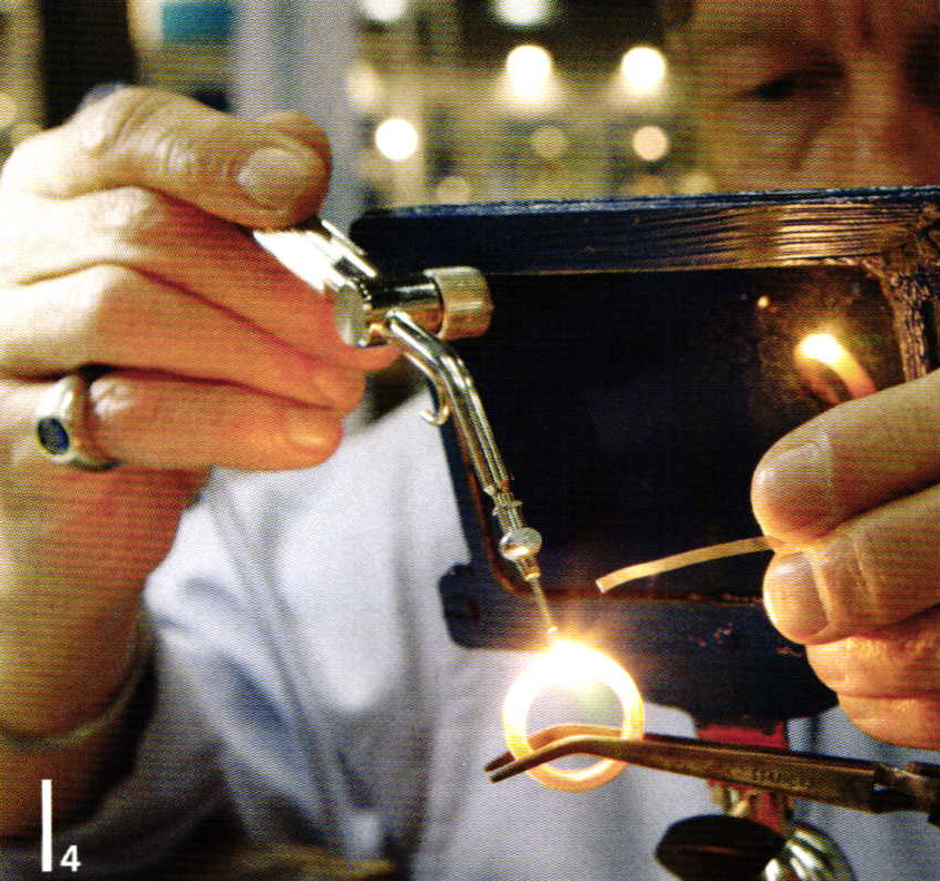 W. Schäfer: You need 12 degrees of granulation for polishing with standard sandpaper. But two are sufficient if you use the point method developed by 3M. A significant advantage with platinum is also that it can be rendered high gloss without weight loss, as the material is not worn off, but rather displaced. Combined with its stable form, this means that eyes on chains or pendants can never become thinner or deformed as we see in chains and bracelets made of gold.