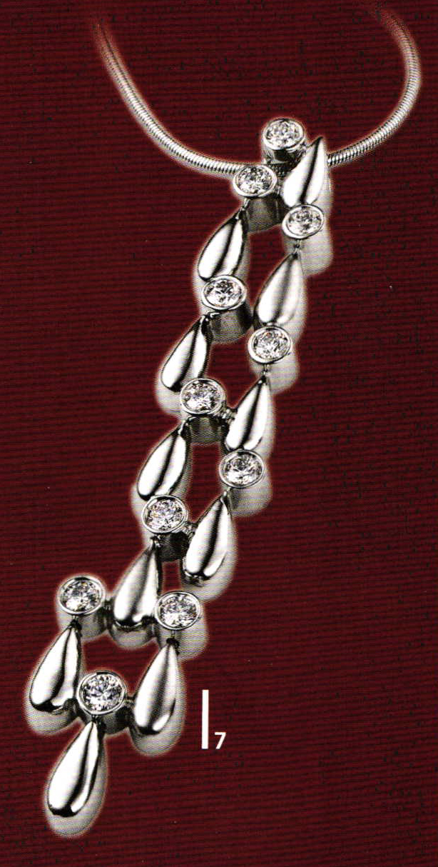 Platinum jewelry was consciously positioned on the German market in an avant garde design style. It should be clearly recognizable and distinguishable from white gold. Matt, silky surfaces, a strict language of firm and pure and clear optics were the philosophy during market introduction. The clamped ring is a perfect example of this. As it was launched, a promise was made that anyone who could succeed in removing a sizeable one-carat stone from its setting could keep the ring. Naturally, nobody managed. At the start of the two-tone age around the mid nineteen eighties, softer jewelry lines were added to the strict forms. Platinum jewelry combined with yellow or red gold has at times advanced to become a main turnover factor in retailing. Since 1994, classic collections have enhanced the designer range in an elegant and feminine design style with diamonds, colored gemstones and pearls. Starting in Europe, platinum provided all continents with important impulses in terms of processing and design.