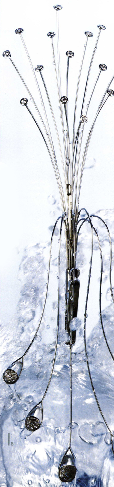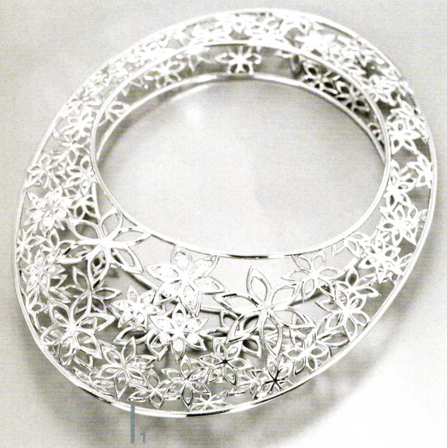 W. Schäfer: Primarily speaking, platinum is a modeling material. Casting work is possible with the cobalt alloy, but it's tricky. The excellent catalytic properties mean that gold can be combined with platinum without flux or solder. Using a laser is also easy. In view of the fact that platinum does not change its form, i.e. does not expand or contract if the temperature changes - this is why the original meter and kilo were made of it - it is not sensible to combine it with enamel. Conversely, we see everything that platinum has to offer in delicate, filigree creations that would not be possible at all or in this form with other materials. Finer pieces are also a response to rising precious metal prices. Platinum can be pulled into extremely thin threads. You only need one gram in order to produce a two-kilometer wire. These properties mean that you can design with endless freedom, for example woven accessories. If you need a lot of stone and not much metal, platinum is what you want. Furthermore, a blue stone will remain blue in platinum; if it were in silver, it would loose brilliance, quite apart of the more bulky setting.