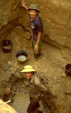 | Figure 7 Miners at Vietnam's Quy Chau ruby deposit. (Photo: R.W. Hughes; May, 1992) |