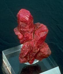 | Figure 2 Ruby crystal group from Luc Yen, Vietnam. (Photo: Bart Curren / ICA; specimen: Pala International) |