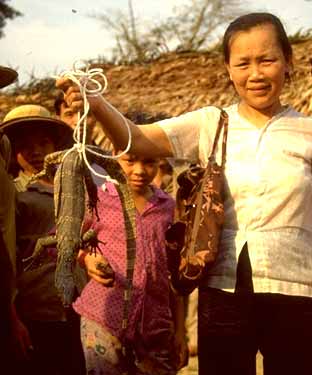 | Figure 6 I'll bet it tastes just like chicken… Dinner for sale in the market of Vietnam's Quy Chau ruby mines. (Photo: R.W. Hughes; May, 1992) |