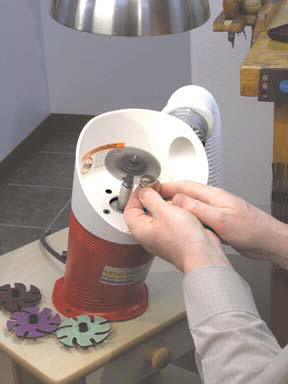 Product engineers from JoolTool®, a division of DEP Enterprise and Development, Inc., developed and tested the Warrior™ system with various accessories through Rich Bohr, 3M's account executive for the creative arts market and jewelry products research specialist to deliver a new power tool system kit called the Warrior™ capable of performing split-lap abrasive pre-finishing, finishing and polishing at the bench. The unit is compact and contains a 1/20 hp motor with full torque at all speeds. The motor is comparable and exceeds other 1/8 hp motors on output torque ratio. Here's what is included in the kit and how the system works: