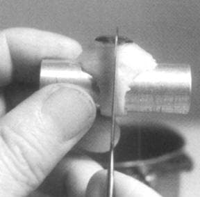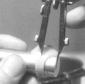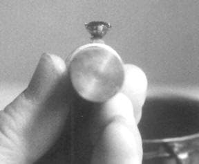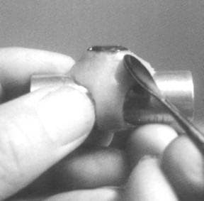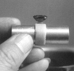 Note: The wax pattern will shrink and so will the metal casting… anywhere from 8 to 11 percent in total. Thus, before casting your wax model, be sure to scrape the inside of the bezel or prongs so as to create a gap of at least 0.5 mm. To check the enlargement of the seat area, gently place the stone in the wax seat and tap the side of the wax pattern and see if the vibration will drop the stone into place.