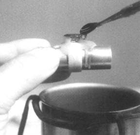 Into a small stainless steel pot, melt wax 1/3 of the capacity. You do not want a full pot because in case of an accident, you want to minimize the burn. Mix hard green carving wax and green injection wax. Start with a 25:75 ratio mixture. Work with this to find the proper mixture that fits your temperament.