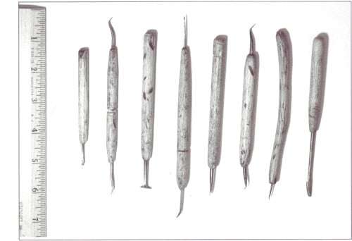 I make all my own wax carving tools and hot wax tools.I have done this since the early 1970's when I could find only dental tools ready-made on the market. I was told a bent nail would suffice, but thought I could do better. So my tools and techniques developed together and now the one is probably a reflection of the other.For a long, time I thought the variety in tools was endless, but now I only make modifications of a few basic shapes. They are shown below. The tools are easy to make and require no specialized equipment.