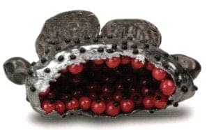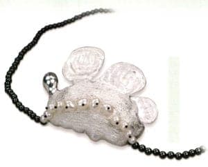 Sam Tho Duong has his Pforzheim professors to thank for his work with ginger. When looking for a topic for his thesis, they decided to present the Vietnam-born designer, who now lives in Germany, with a ginger root. Born in 1969 in Bien Hoa, Sam Tho Duong took on the challenge and attempted to transform the root into a unique and artistic piece of jewelry. He examined and dissected the fragrant material, dried it and observed it, cut open the root, threaded item onto it, painted it and decorated it. Today he still applied this patient and experimental approach to his work and still uses ginger. The only difference now is that he rarely works on the original material; he prefers to use a cast of a particularly beautifully shaped ginger root which he has already prepared some time ago to create his various pieces. It is important to him that the basic form remains the same and is therefore recognizable whereas the details can be changed. He then uses a combination of different additional materials such as varnish, beads, precious metals and gemstones to give his original shape a new and more decorative face without disguising the fact that the piece is related to the ginger family. He has also retained the dissection approach originally applied to his first ginger root. He sometimes hollows out the basic form or decorates it from the outside or else flattens, splits, halves or duplicates the original shape.